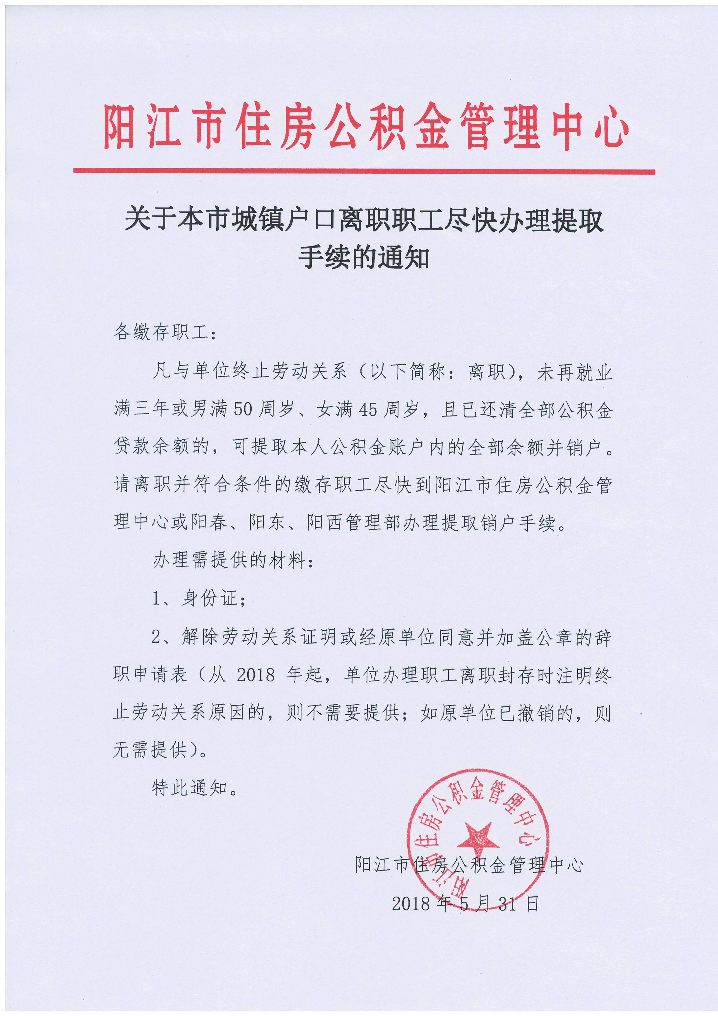 關(guān)于本市城鎮(zhèn)戶口離職職工盡快辦理提取手續(xù)的通知