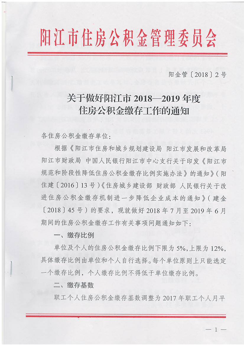 關(guān)于做好陽江市2018-2019年度住房公積金繳存工作的通知