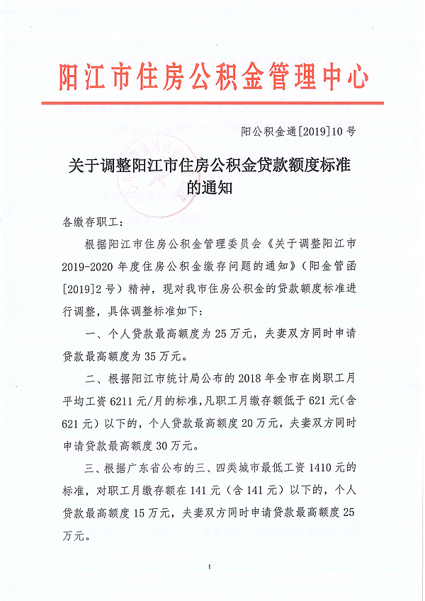 關(guān)于調(diào)整陽(yáng)江市住房公積金貸款額度標(biāo)準(zhǔn)的通知